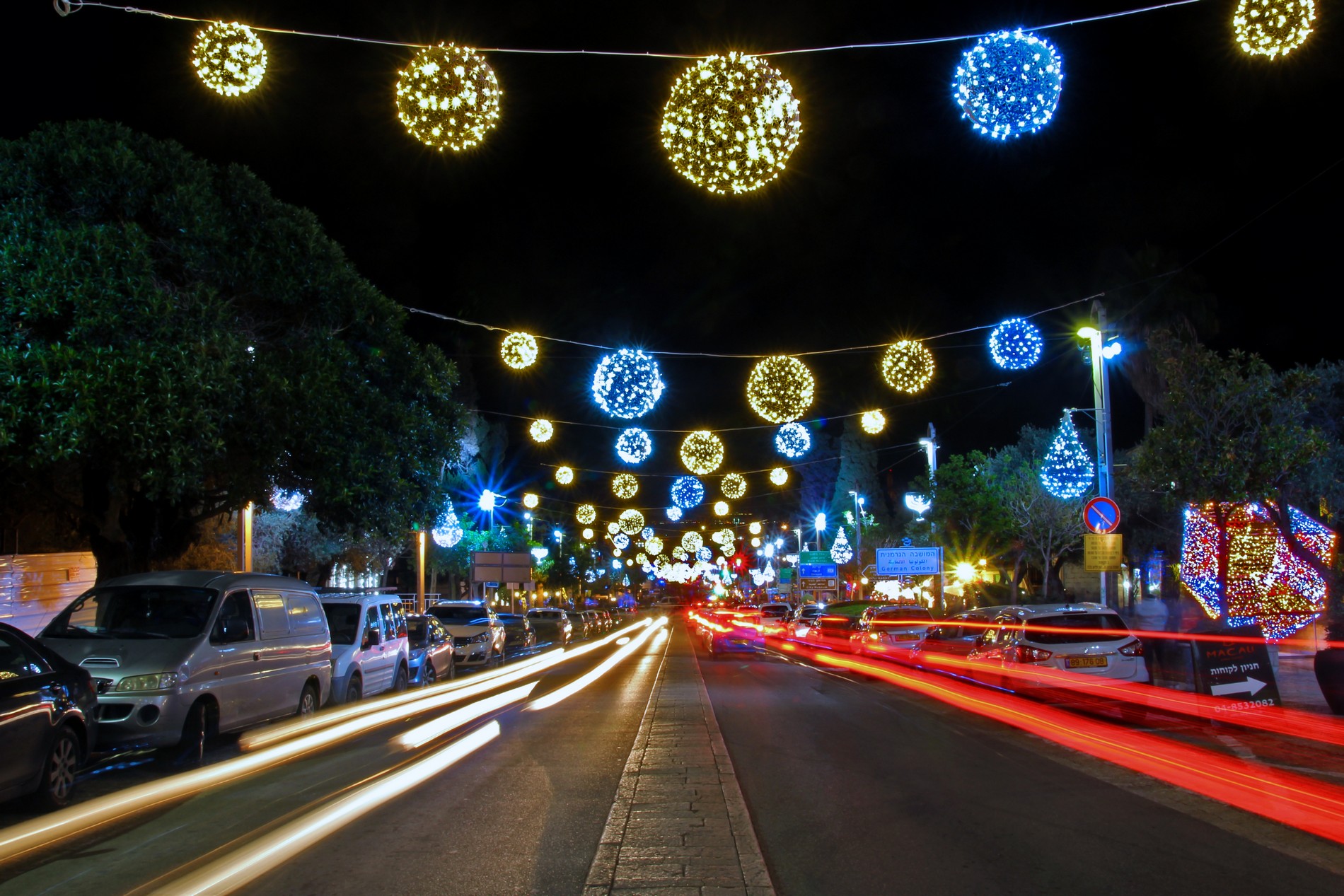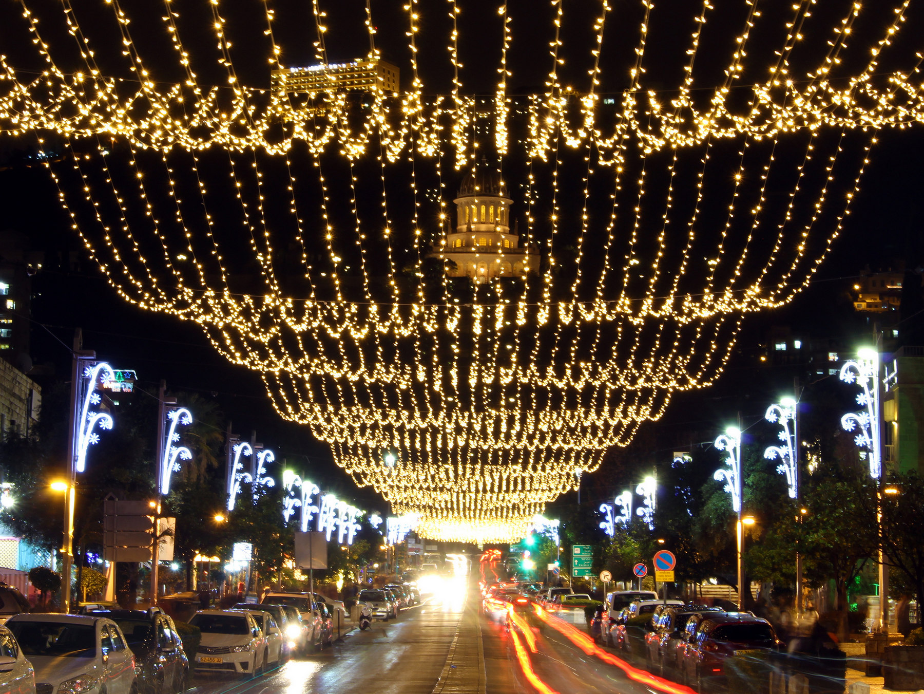 - Німецька колонія (Мошава Ґерманіт) — красива вулиця з різдвяною ілюмінацією та видом на Бахайські сади.